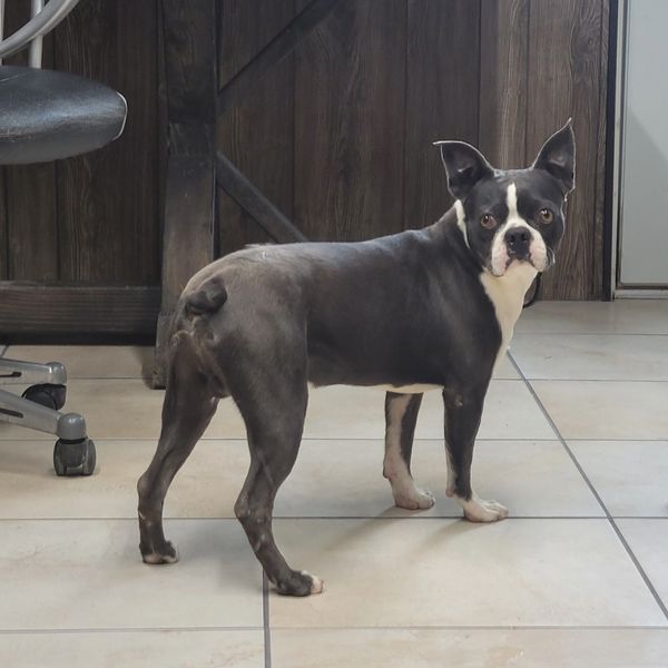 We are excited to announce that Bluey and Blue Boy had 5 adorable puppies! Our Blue Boston Terrier puppies are $ 2,500. We are now accepting deposits for pick of the litter! Pick of the litter is assigned in the order the deposits are received. They will be AKC registered with a 4 generation pedigree showing their family tree. They will have a Full Vet check up before joining his/her new family and will be current on their vaccinations. We do require a 50% deposit to hold the puppy you choose. The deposit is non-refundable unless for some reason he or she does not pass their Vet check up. The remaining balance is due when you pick him or her up, or we would be happy to meet you within 1 hour of Odessa, MO to help with your drive. If you live to far away to pick her/him up, flight arrangements can be made depending on your area, please call us for details (flight normally range from $500-$700). If flight arrangements are made, the remaining 50% payment plus the flight is due 3 days prior to him or her leaving. Please call or email us with any questions you may have!